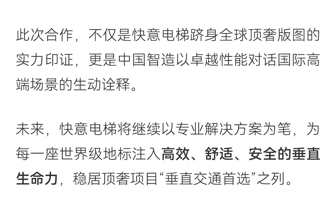 從中國到世界:快意電梯攜手迪拜迪馬克地產(chǎn)公司,共同打造馬爾代夫頂奢品牌“東方文華酒店”