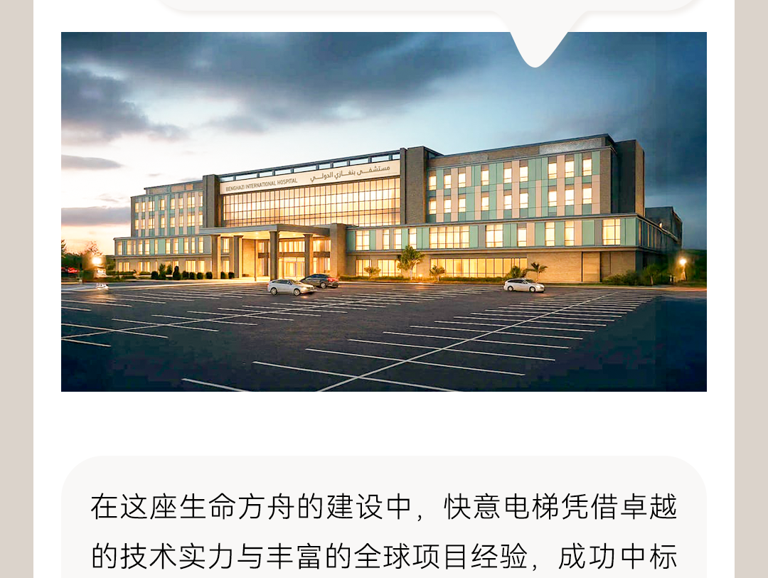 全球?qū)嵙υ佾@認(rèn)證:快意電梯中標(biāo)班加西國(guó)際醫(yī)療中心整體電梯項(xiàng)目